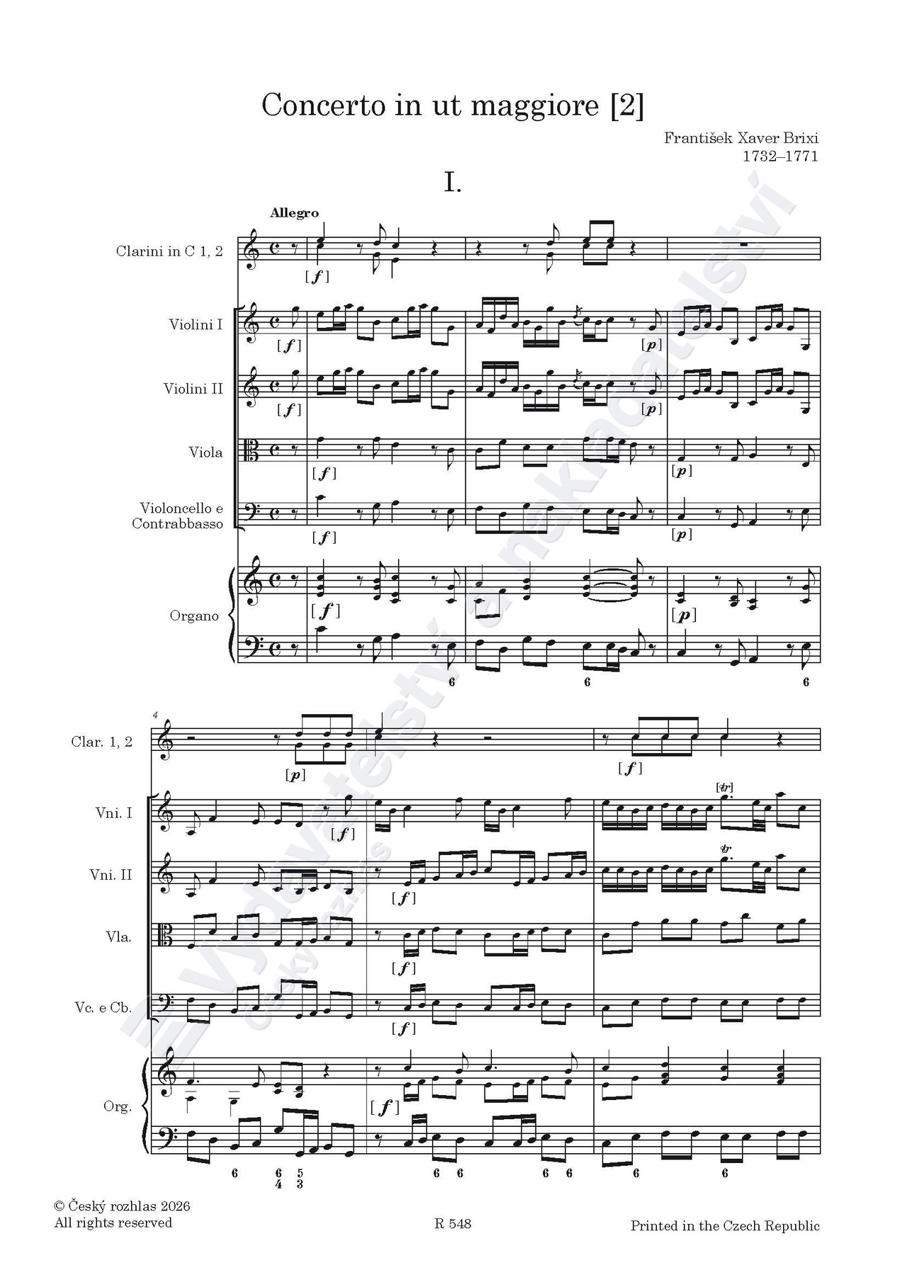 František Xaver Brixi (ed. Jan Hora): Dva koncerty pro varhany a orchestr C dur